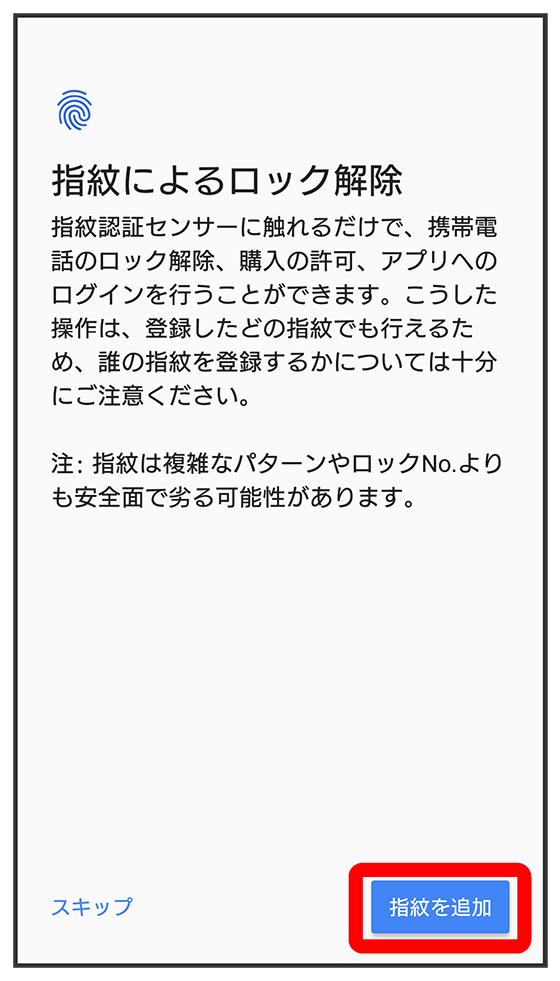 - 指紋を設定しないときは、をタップします。