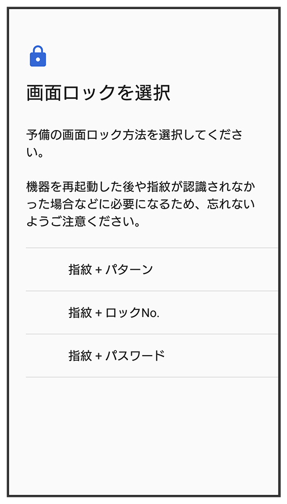 画面の指示に従って、指紋によるロックを設定