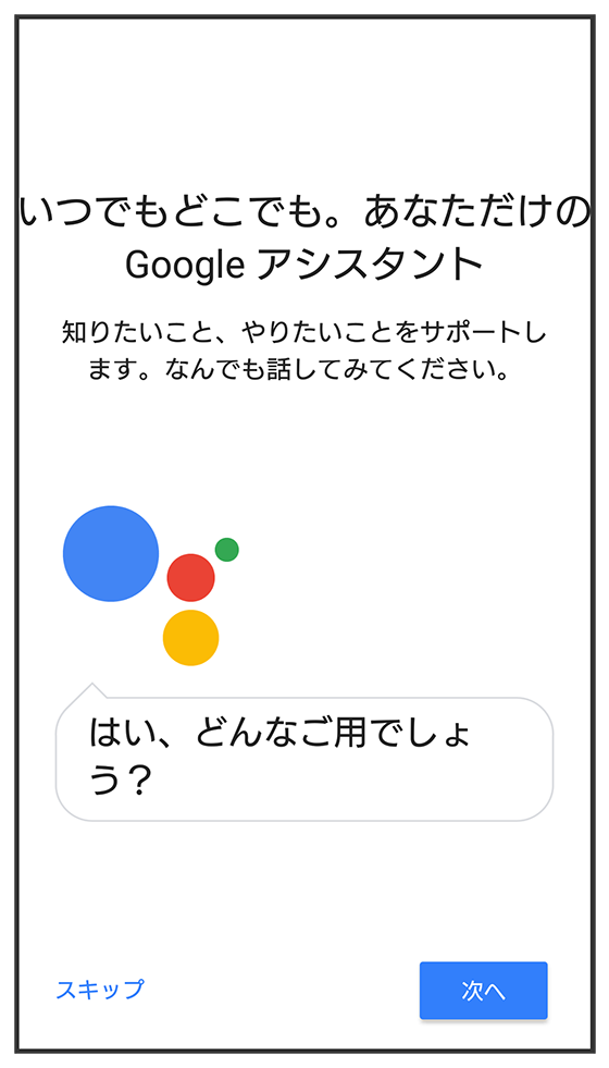 画面の指示に従って、Google アシスタントを設定