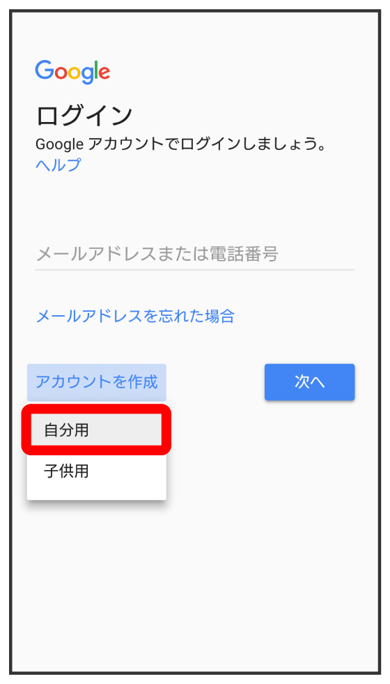 - 子供用のアカウントを作成する場合は、をタップして画面に従って操作してください。