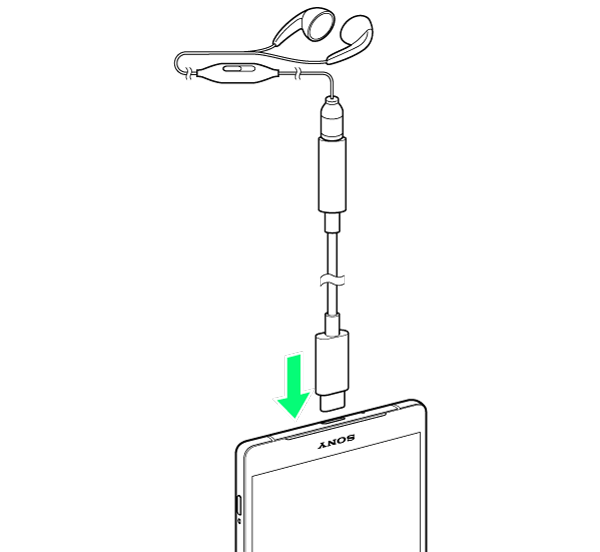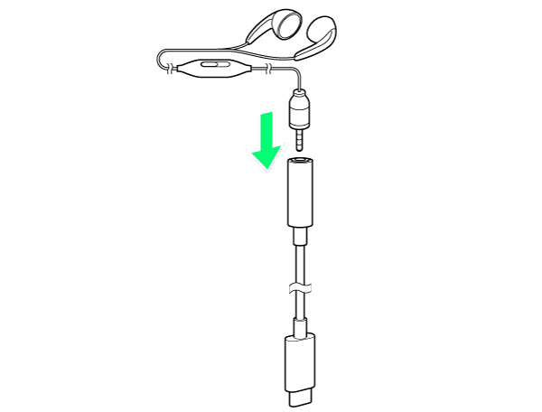ヘッドホンやイヤホンをUSB Type-C-3.5φ変換ケーブルの接続端子に接続する