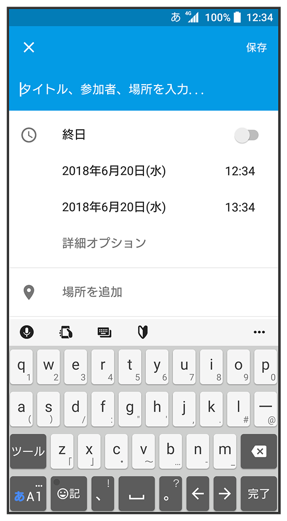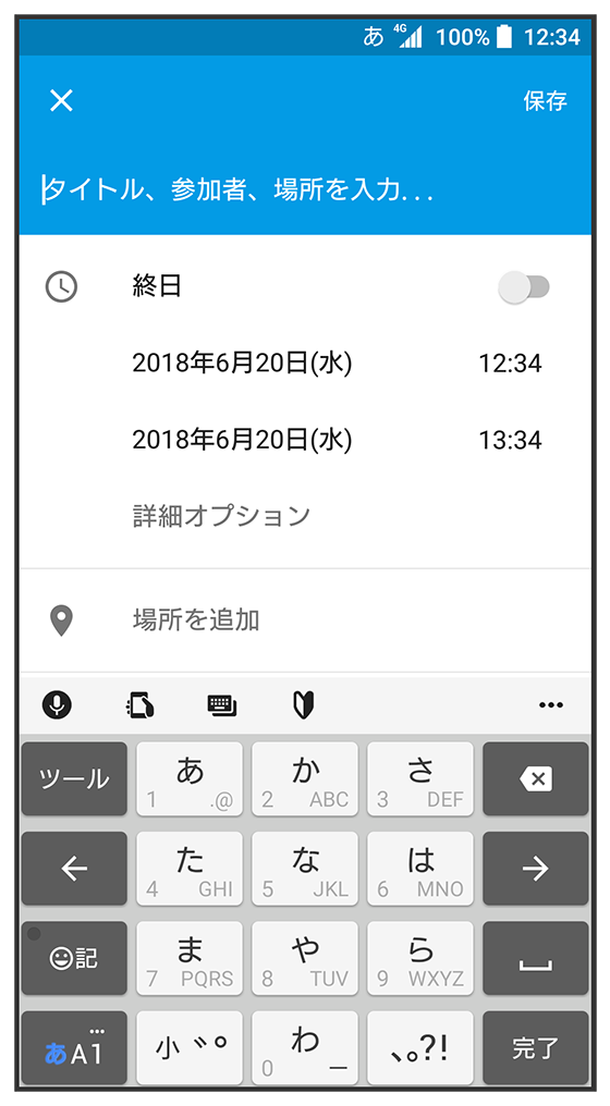 をタップします。 - 文字の入力方法は、あらかじめ日本語入力の「POBox Plus」に設定されています。「POBox Plus 日本語入力 使い方ガイド」では、POBox Plusを詳しく解説しています。