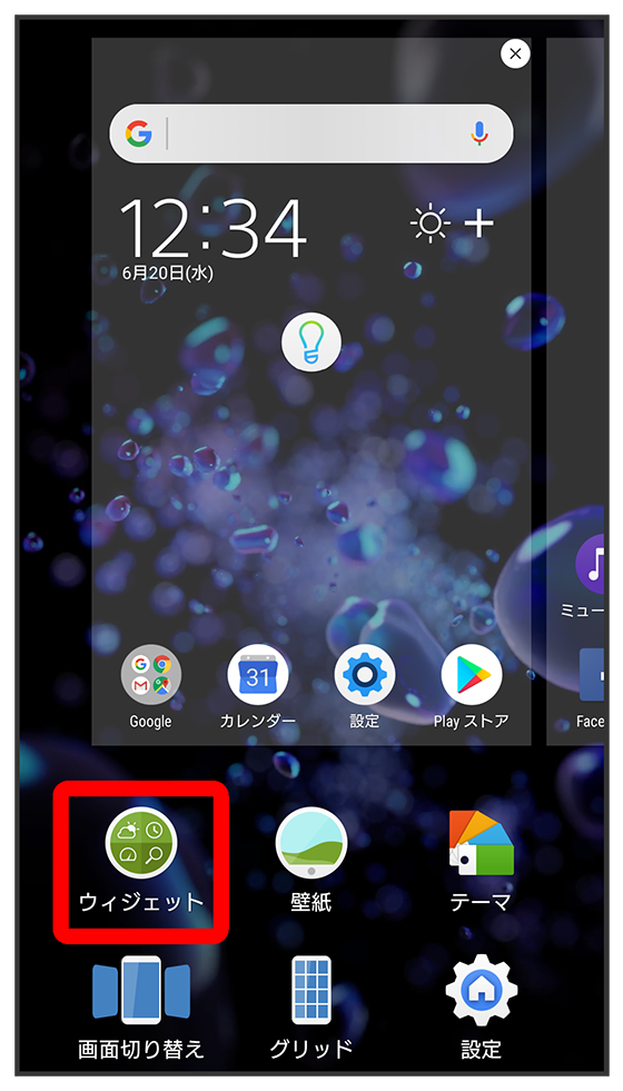 ウィジェット一覧画面が表示されます。