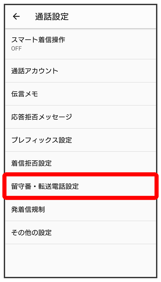 留守番・転送電話設定画面が表示されます。