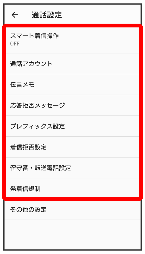通話に関する設定ができます。設定できる項目は次のとおりです。