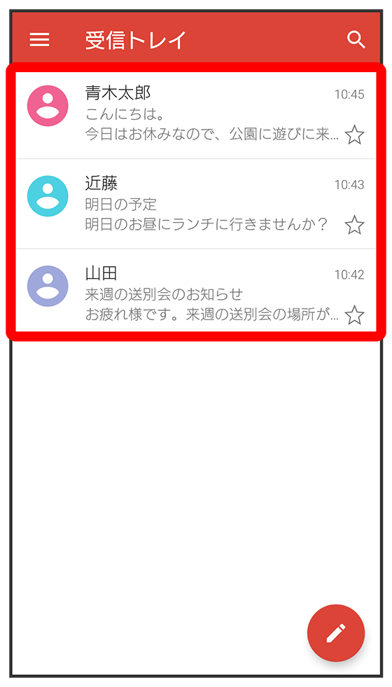 メール一覧画面が表示されます。