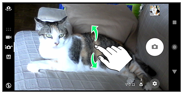- 「ARエフェクト」「パノラマ」などに設定している場合やフロントカメラでの撮影時は、ズームを使用できません。