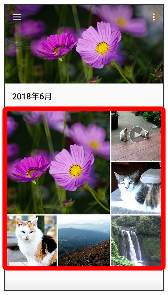 をタップして一覧画面に戻り、見たいファイルを再度選択するか、写真/動画画面を左右にフリックして切り替えてください。