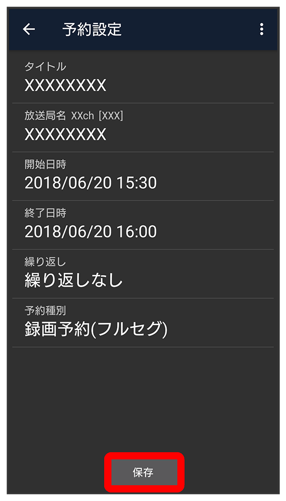 - 録画予約の場合は、「予約種別設定」で「録画予約(フルセグ)」「録画予約(ワンセグ)」を選択できます。