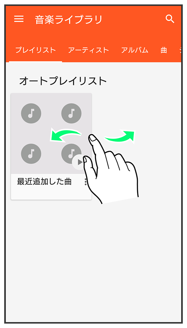 画面を左右にフリックしてカテゴリ(「アルバム」など)を選択