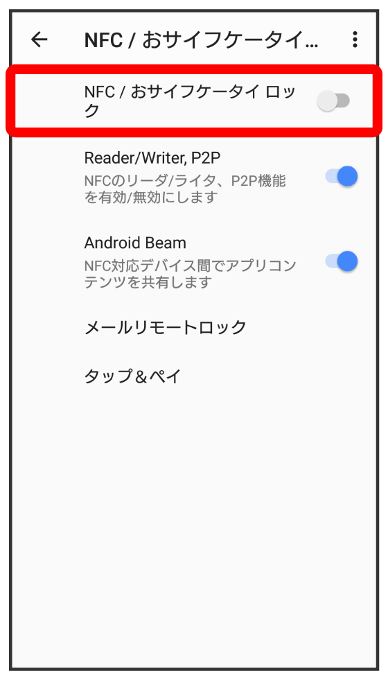 NFC/おサイフケータイ® 設定画面が表示されます。