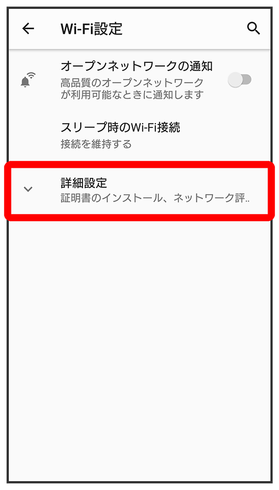 Wi-Fi設定画面が表示されます。
