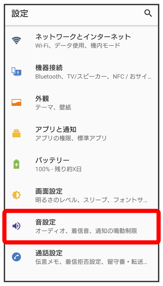 着信音、操作音など、音に関する設定ができます。設定できる項目は次のとおりです。