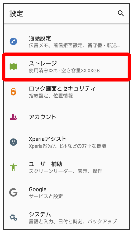 | 機器のストレージ | 本機の合計容量/空き容量を確認します。 |