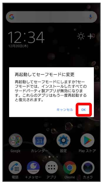 - セーフモードで電源を入れると、追加していたウィジェットが削除されることがあります。