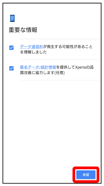 - Xperiaサービスを設定しないときは、をタップしてください。