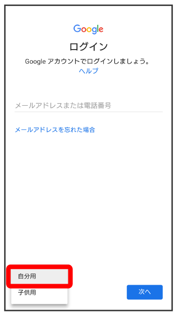 - 子供用のアカウントを作成する場合は、をタップして画面に従って操作してください。