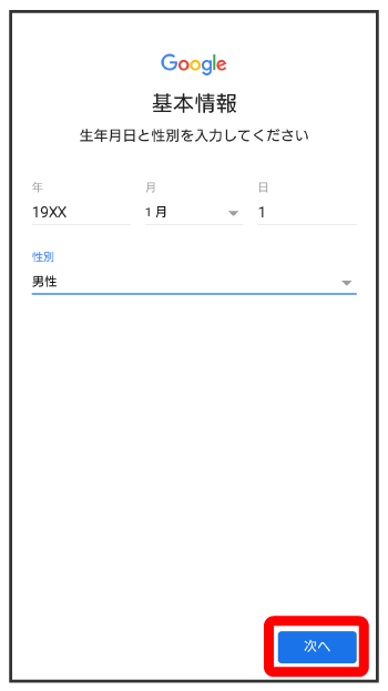 生年月日を入力性別を選択