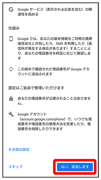 Googleサービスを設定