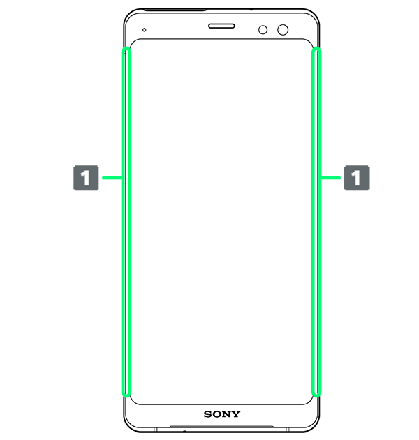 画面外側の縁をダブルタップするとサイドセンスメニューが表示されます。アプリの起動や、機能のON/OFFなどができます。表示するアプリはカスタマイズできます。 - バック操作