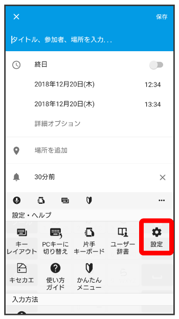 | キーボードと入力操作 | テンキーの入力方式やフリック感度などを設定できます。 |