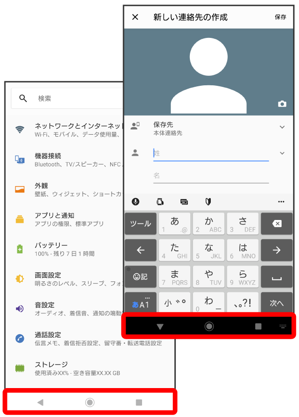 画面下部のアイコンが表示される領域を「ナビゲーションバー」と呼びます。アイコンをタップして操作できます。