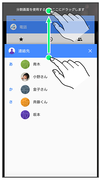 本機の表示画面を分割し、2つのアプリを表示、操作できます。