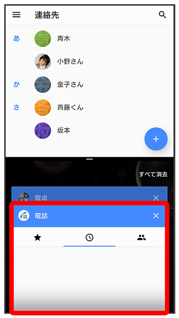 最近使用したアプリの履歴が表示されます。