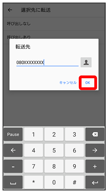 をタップすると、連絡先から転送先電話番号を選択できます。
