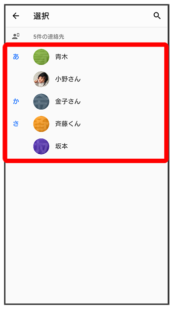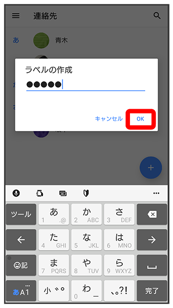 - 複数の連絡先を設定する場合は、ラベルを設定する連絡先をロングタッチ続けて他の対象の連絡先をタップと操作します。