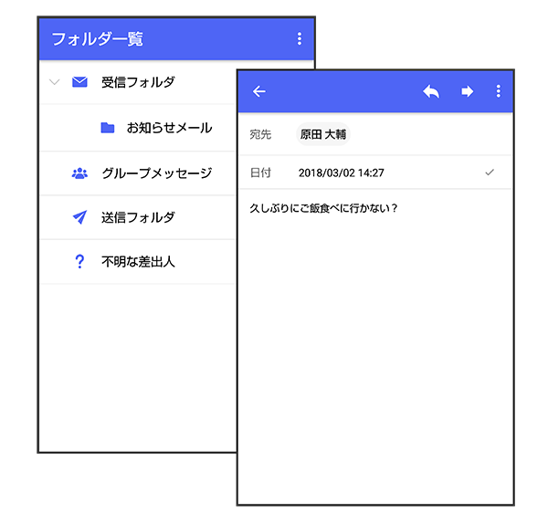 - フォルダ形式で表示される画面について詳しくは、「フォルダ一覧画面の見かた」、「メッセージ詳細画面の見かた(フォルダ形式表示)」を参照してください。