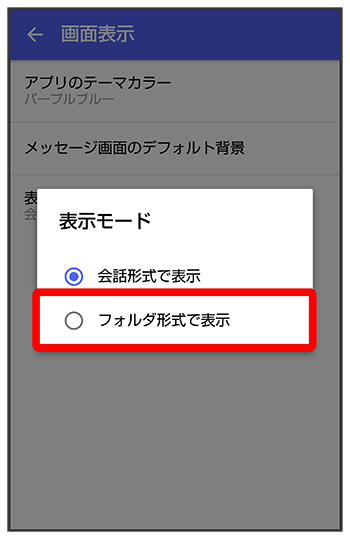 メッセージの画面を、フォルダ形式の表示に切り替えることができます。