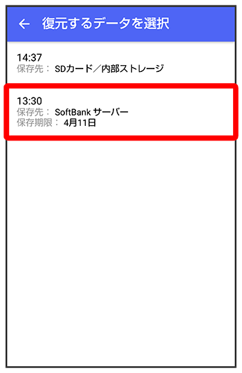 サーバーにバックアップしたデータを選択