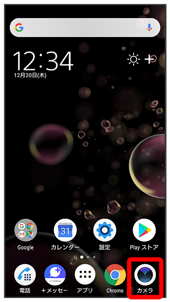 画面消灯時やロック画面表示時に本機を横向きにし、振り上げて構えると、画面に円が表示されます。円をタップしてカメラを起動するか、カメラ起動と同時に撮影するかどうかを設定できます。