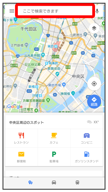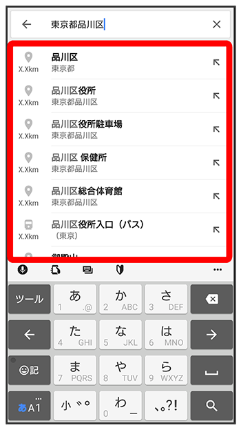 住所や都市、施設名などを入力選択候補から住所や都市、施設名などをタップ