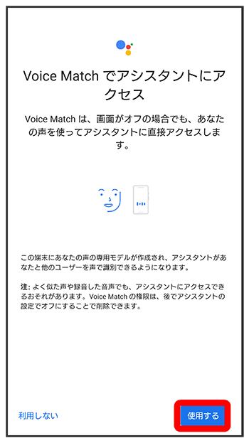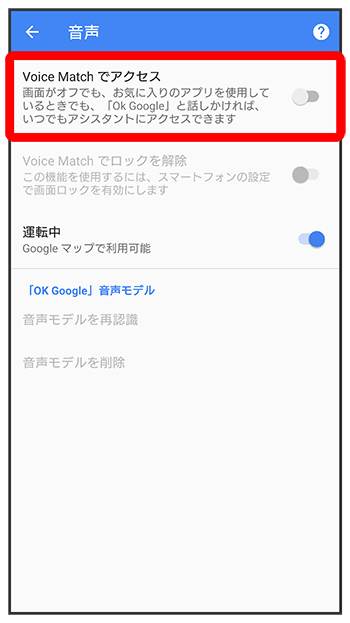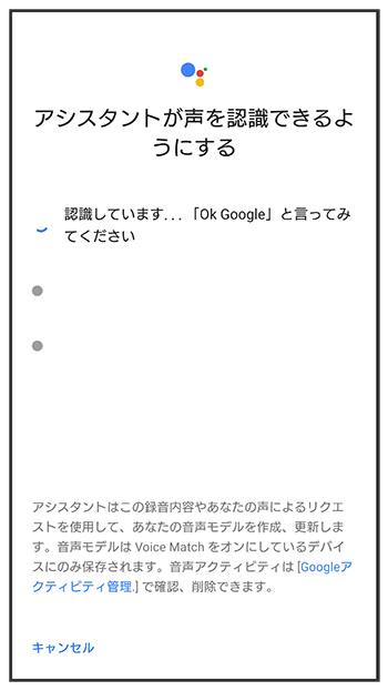 - すでに音声操作を設定したことがある場合は、音声アシスト機能がONに設定されます。