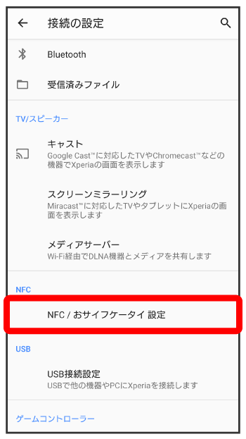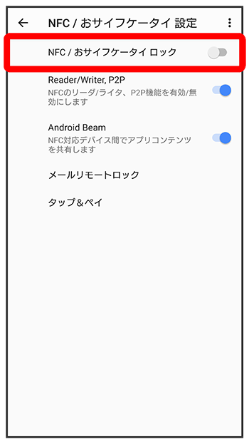NFC/おサイフケータイ® 設定画面が表示されます。