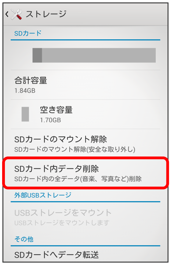 - フォーマットすると、SDカード内のデータがすべて消去されます。他の機器で使用したSDカードをフォーマットするときは、あらかじめよくご確認のうえ、操作してください。