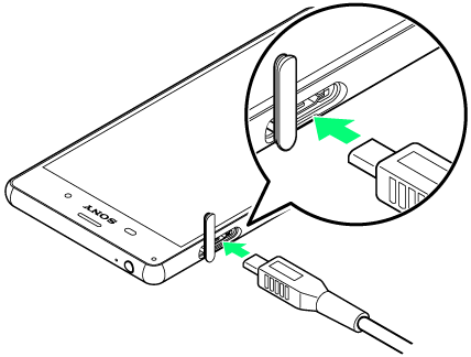 ACアダプタのmicroUSBプラグを本機のmicroUSB接続端子に水平に差し込む