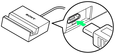 卓上ホルダの裏側の充電端子に、ACアダプタのmicroUSBプラグを差し込む