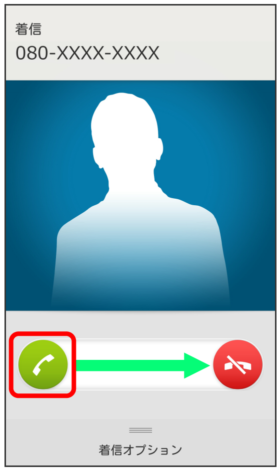 着信中に- 相手に応答保留ガイダンスが流れます。応答を拒否するか、相手が通話を終了するまで保留が続きます。