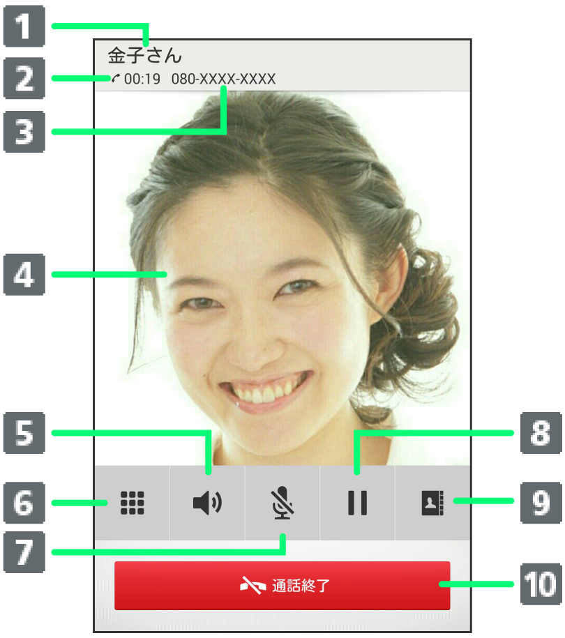 通話中は、アイコンをタップすることにより、次の機能が利用できます。