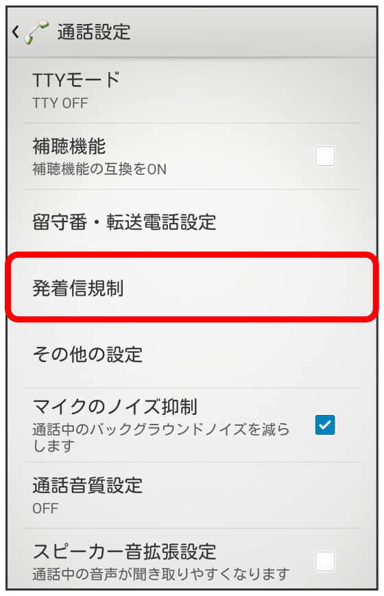 - 発着信規制中に電話やSMSの発信をしようとすると、発信できない旨のメッセージが表示されます。お客様がご利用になる地域によっては、表示されるまでに時間がかかることがあります。