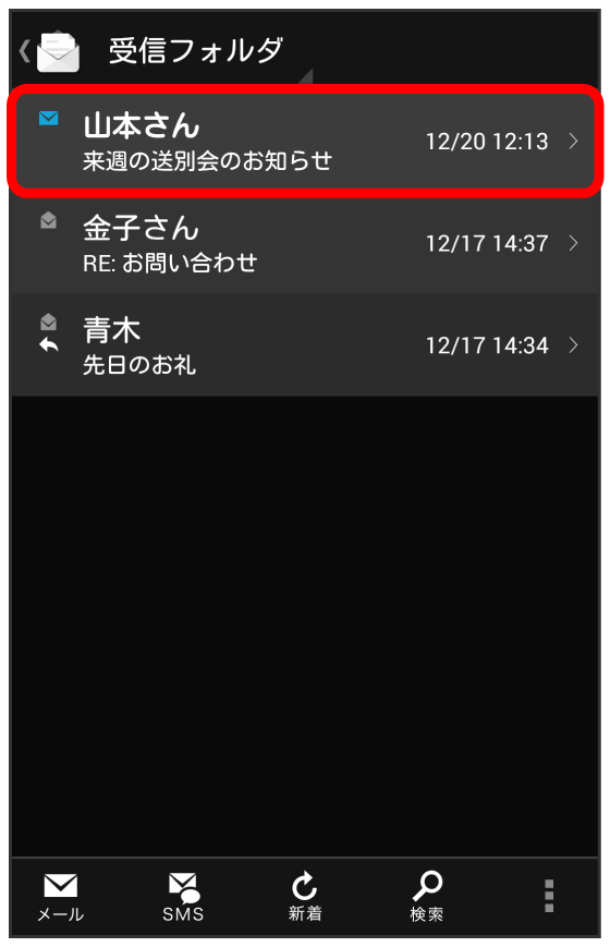 S!メール/SMS一覧画面でメールを既読にする