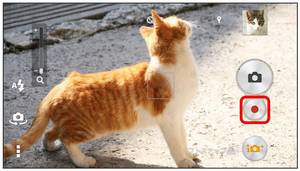 - 撮影画面をピンチアウト/インしても、ズームイン/アウトできます。