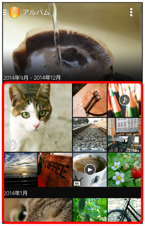 - 複数の画像を選択したい場合は、画像をロングタッチした状態で、選択したい他の画像をタップします。