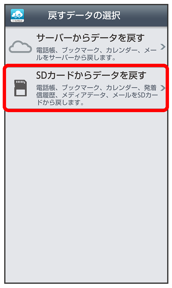 - 戻すデータによっては、正常に戻せない場合があります。また、戻したデータの一部が破棄、または変更されることがあります。