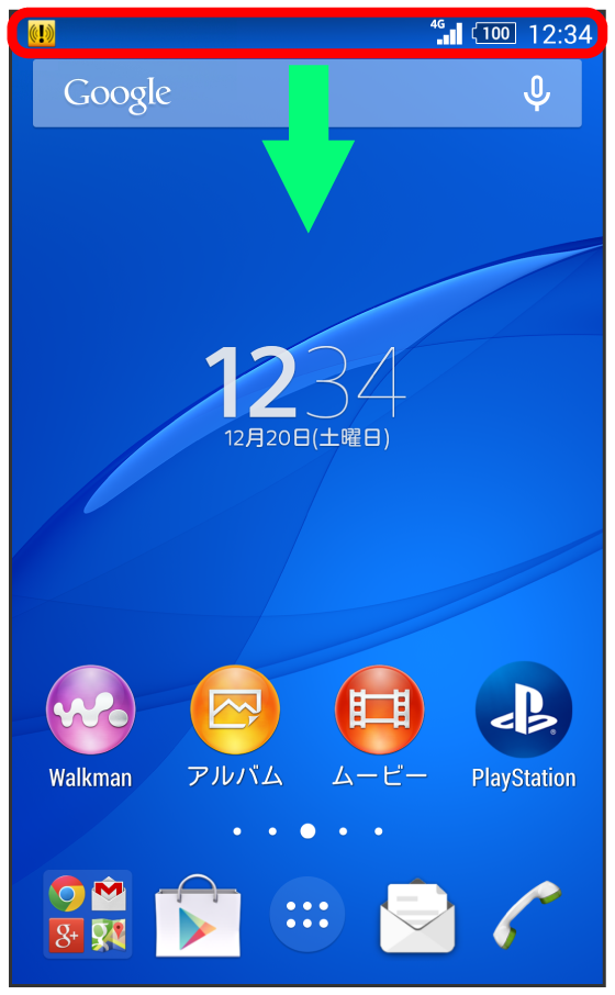 ステータスバーを下にドラッグして通知パネルを開く