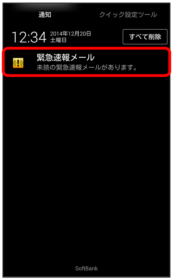 緊急速報メールの通知をタップ