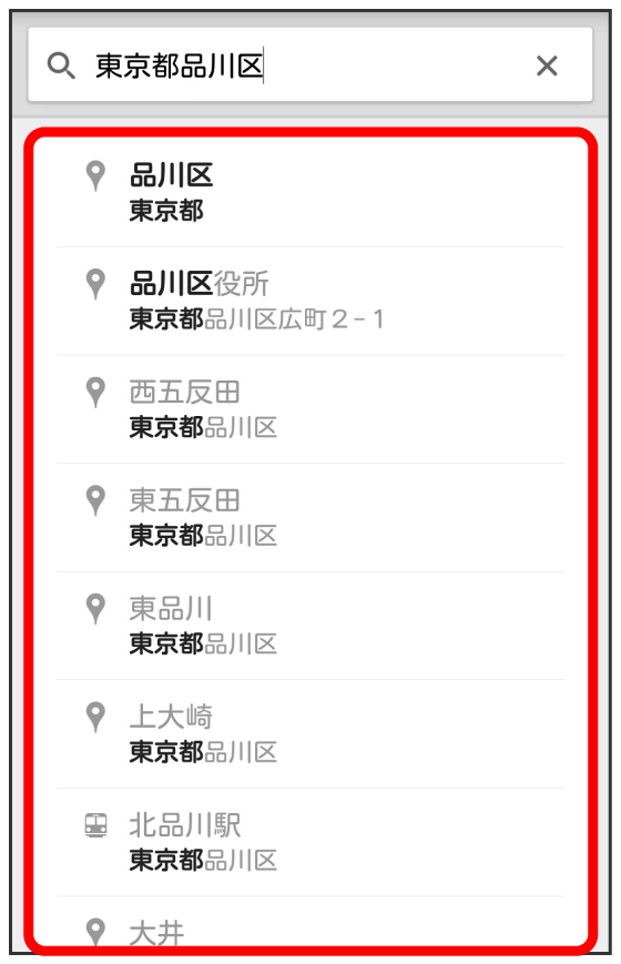 住所や都市、施設名などを入力選択候補から住所や都市、施設名などをタップ